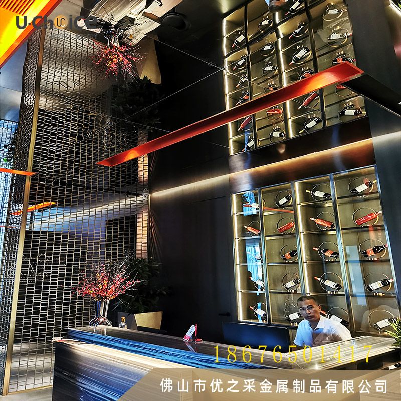 裝修材料:不銹鋼屏風、鏡面不銹鋼蜂窩板、不銹鋼酒柜