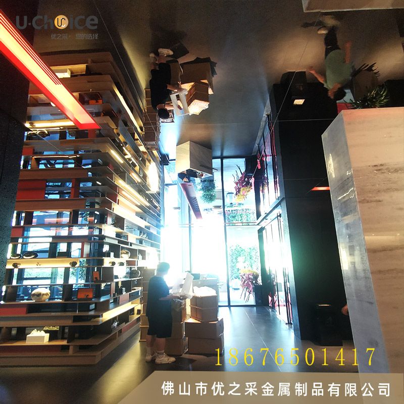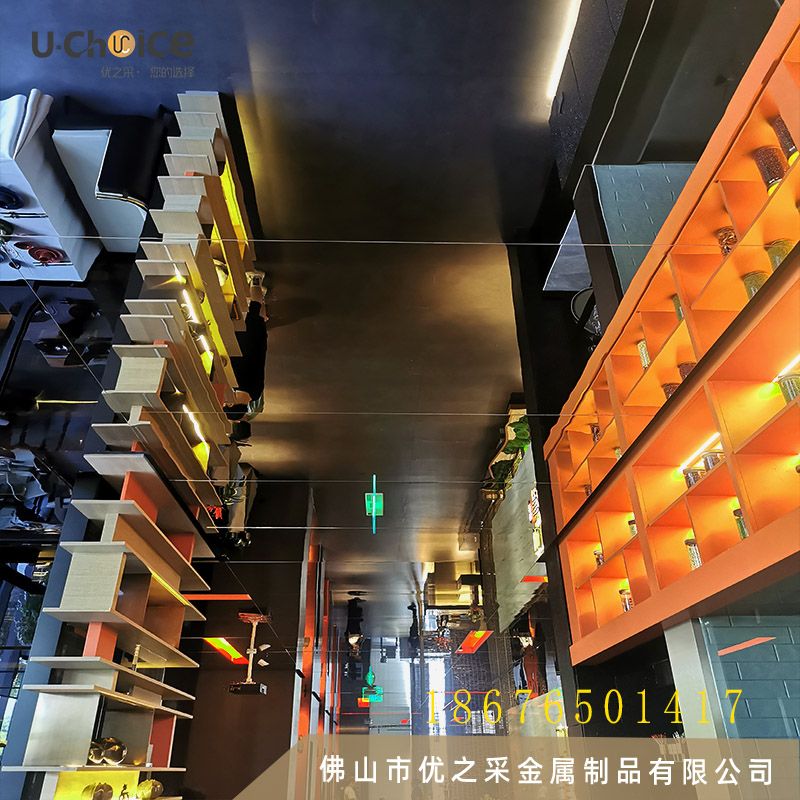 長沙如意福宴采用鏡面不銹鋼蜂窩板做為吊頂,一起看看案例的安裝效果吧!